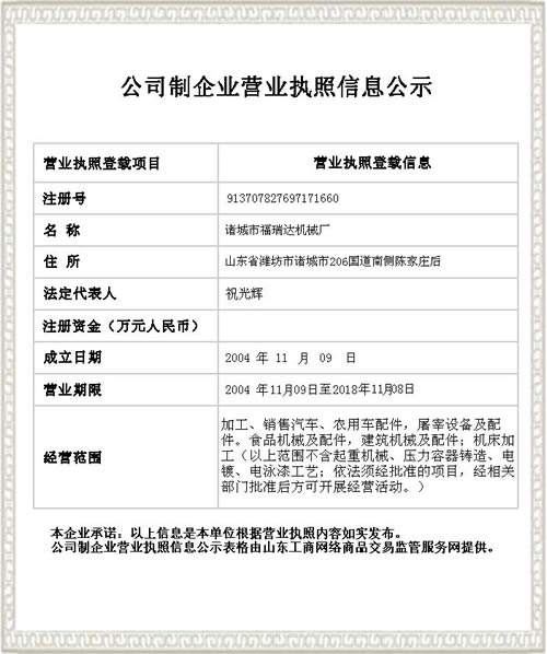 諸城市福瑞達(dá)機(jī)械有限公司簡(jiǎn)介